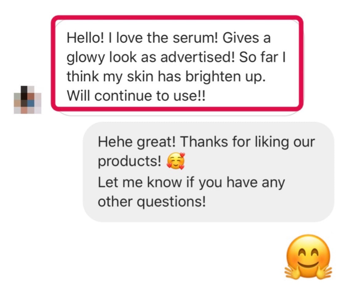 "I love the serum! Gives a glowy look as advertised! So far I think my skin has brighten up! Will continue to use!"